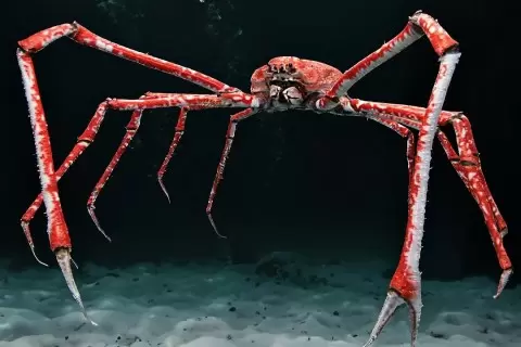 Японский краб-паук — это не просто тотем для биологов, но и соперник для любителей деликатесов. Он стремится завоевать титул самого крупного членистоногого в мире. Хотя по массе его обходит североатлантический омар (весом до 20 кг), в размахе своих лап он не имеет равных — они могут достигать почти четырех метров. Некоторые самки имеют меньшие размеры, что позволяет предположить, что на фото представлены именно они.