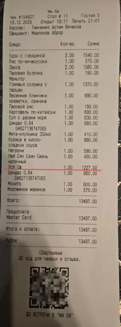 Когда взгляд падает на строку вроде Усл Оф и видим сумму, которую меню не предлагал, в голову приходит мысль о том, как простые траты могут превращаться в небольшие проверки на прозрачность. В таких моментах полезно сверить позицию с меню и датой визита, чтобы понять, есть ли место для уточнения и исправления.