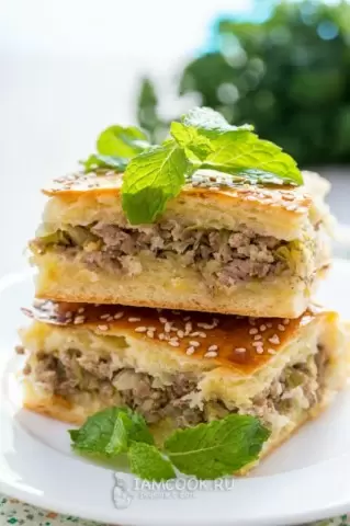 Взгляните на этот восхитительный пирог, который сочетает в себе нежное сметанное тесто, сочную мясную начинку и аппетитную румяную корочку. Он идеально подойдет в качестве дополнения к ароматному борщу, станет отличной закуской на работе или прекрасным угощением для гостей за чашкой чая. Подавать его горячим — это просто удовольствие, а остывший пирог приобретет новый вкус!