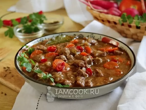 - Пряный гуляш из говядины. Нежное мясо, маринованное в специях, создаст идеальный набор для настоящих гурманов. Блюдо становится еще более изысканным благодаря добавлению зиры и паприки.