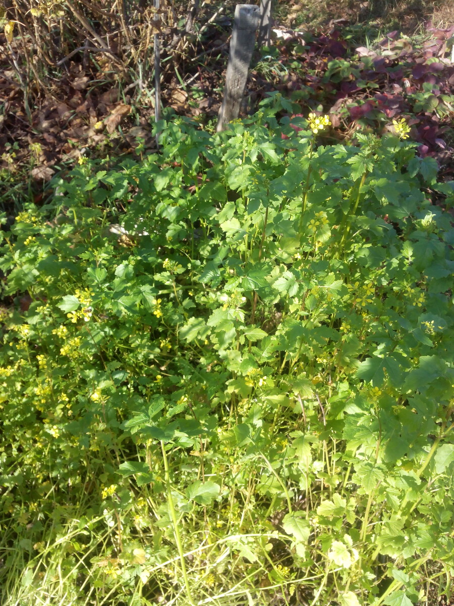 Перед посадкой чеснока многие садоводы используют сидераты, такие как горчица. Это не просто красивая зелень: она выполняет важные функции. После урожая чеснока, который был собран в июле, горчица была посеяна в грядку и достигла высоты около 50 см к моменту осенней посадки. Защищая почву от вымывания и эрозии, она также способствует улучшению структуры почвы, укрепляет её и помогает сохранить влагу.