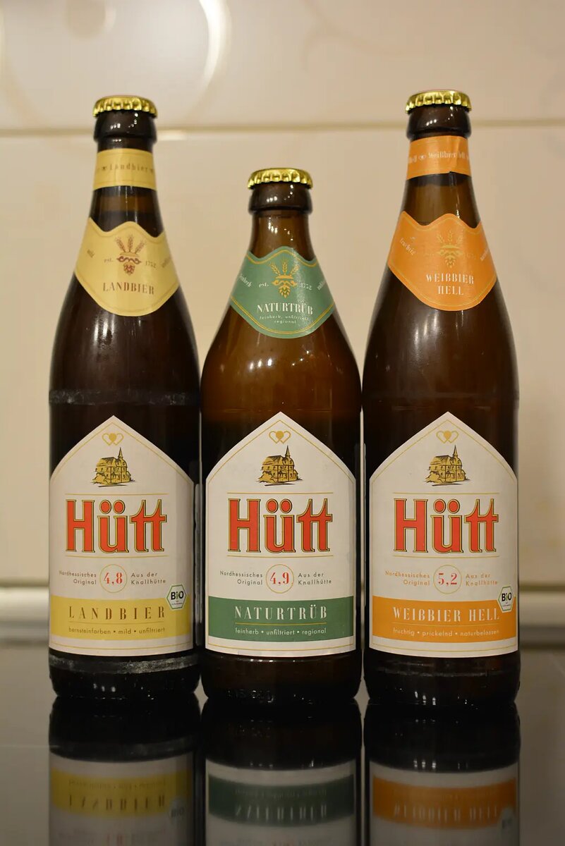 - H?tt Landbier — 4,8/11,5. Это пиво складывается из традиционных рецептов определенной местности. Оно имеет характерный полутемный цвет и нефильтрованный вкус, с нотами карамели и хлеба, однако чувствуется легкое старение с привкусом сухофруктов. Оценка: C+.
