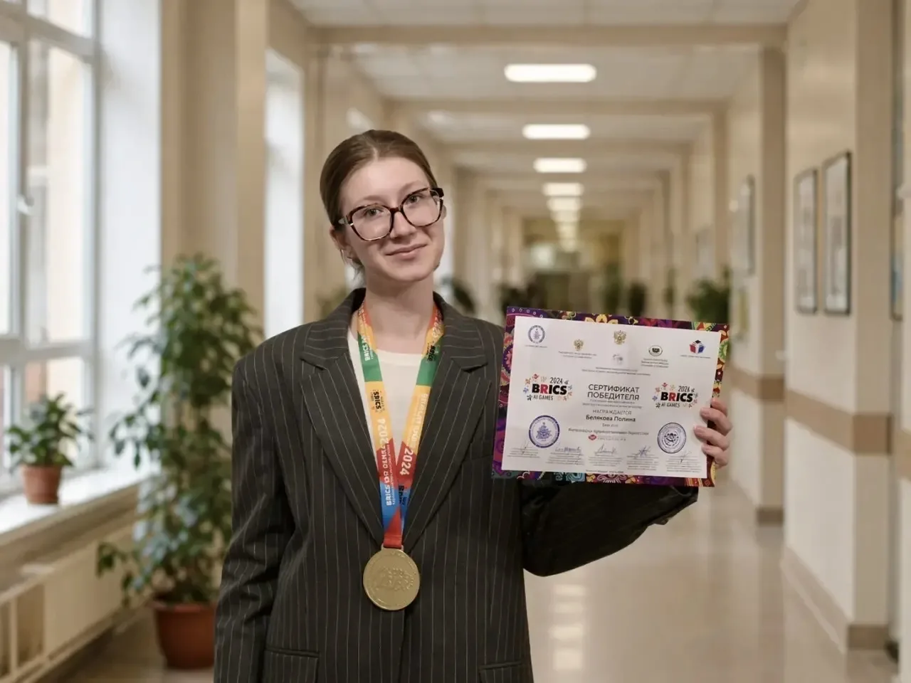 Ученица 11В класса школы №72 Полина Блинова стала победителем Вторых международных детских творческих игр стран BRICS–2026 в номинации «Художественное творчество».
