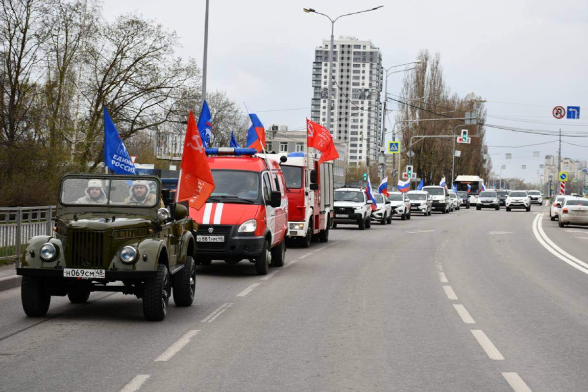 Колонна из 30 машин с флагами России проехала по центральным улицам Липецка