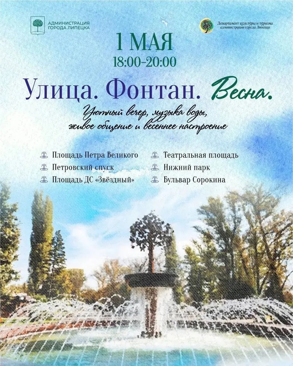 — Приходите с близкими, друзьями, детьми. Давайте вместе откроем сезон фонтанов и наполним этот вечер теплом, музыкой и радостью! — сказала и. о. главы Липецка Светлана Бедрова.