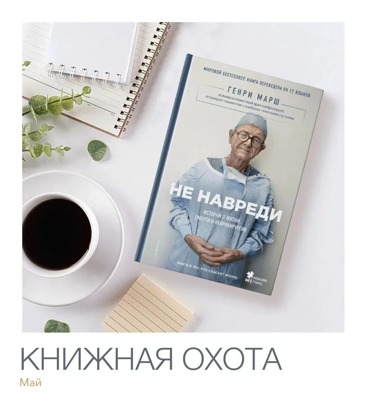 По итогам каждого месяца самый активный участник будет награждён и получит в подарок книгу. Приз, ожидающий майского победителя, – издание Генри Марша «Не навреди. Истории о жизни, смерти и нейрохирургии».